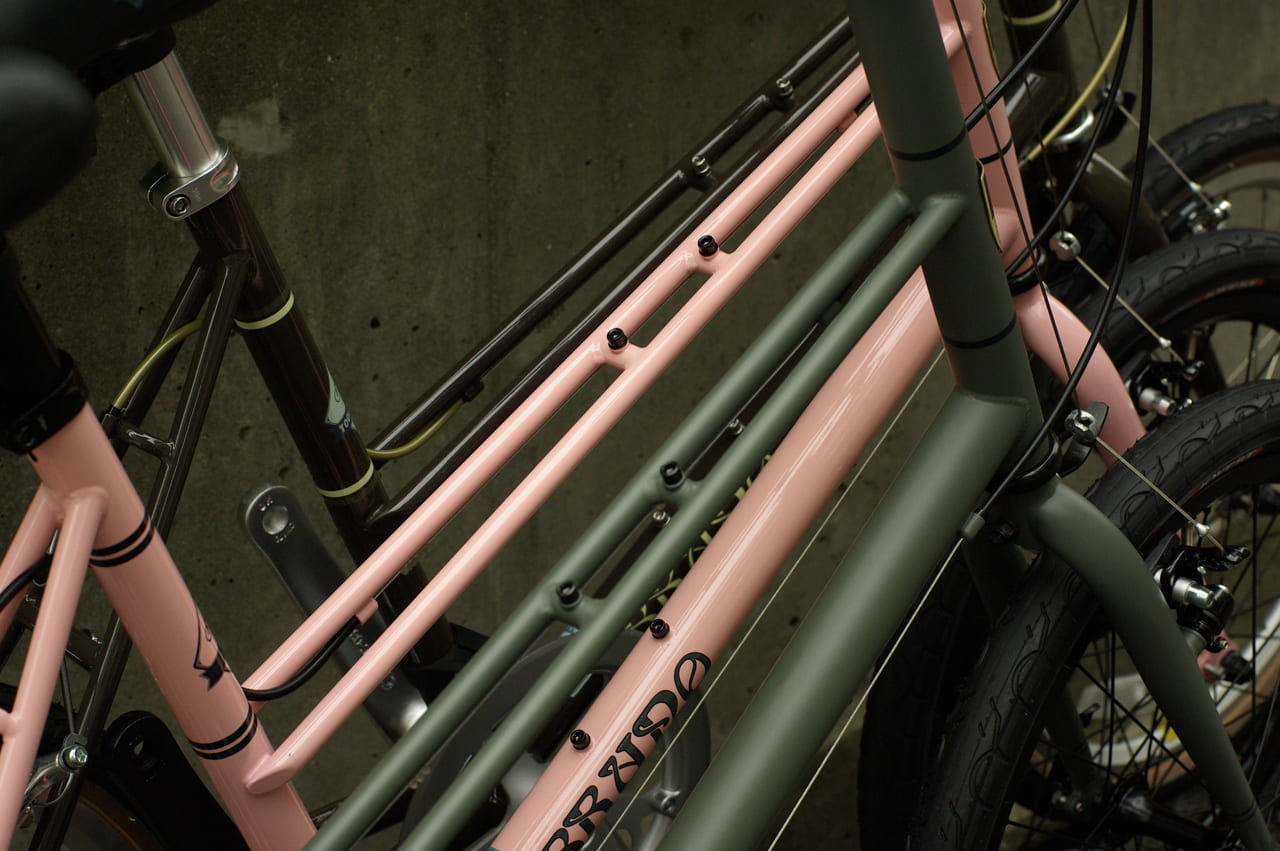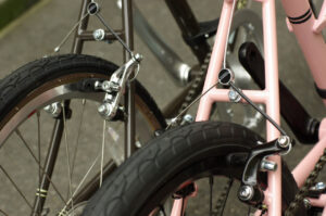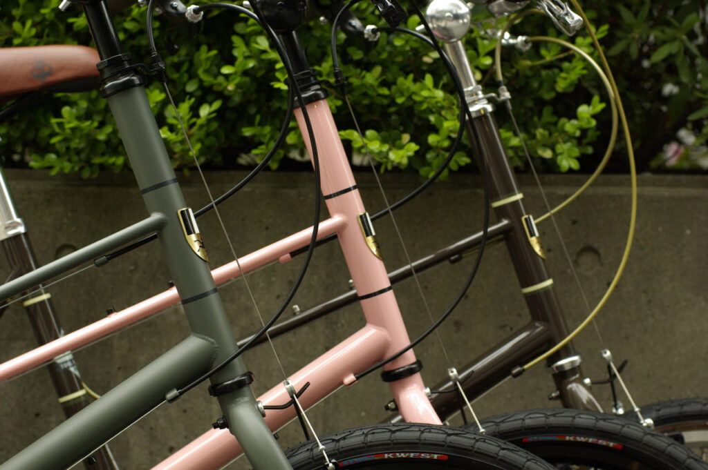 現在の展示車は、ブラックエディションのピンクとマットグレイ、通常モデルのブラウンです。カラーにより、カンチブレーキとシフターの仕様が異なりますが、性能はほぼ同等。しっかりとカラーコーディネイトして下さっていることに嬉しくなりますね。