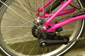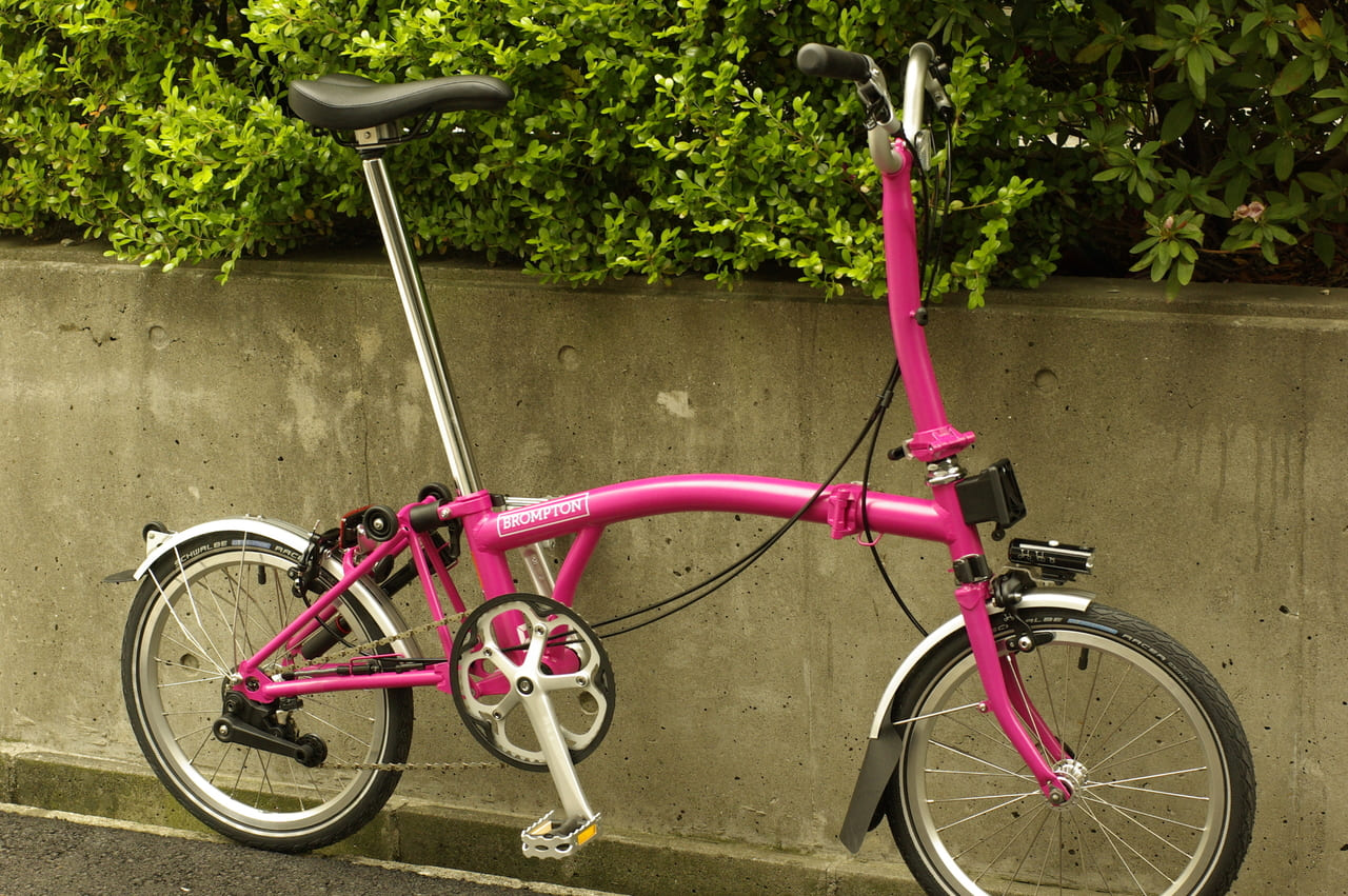先日の作業です。お客さまよりご依頼を受けて、2019年モデルより復活した、ホットピンクの車体をベースに、M2L仕様を製作、納車整備いたしました。女性のお客さまですので、チェーンリングは50Tへ。のんびり軽快サイクリングへ適したスペックです。