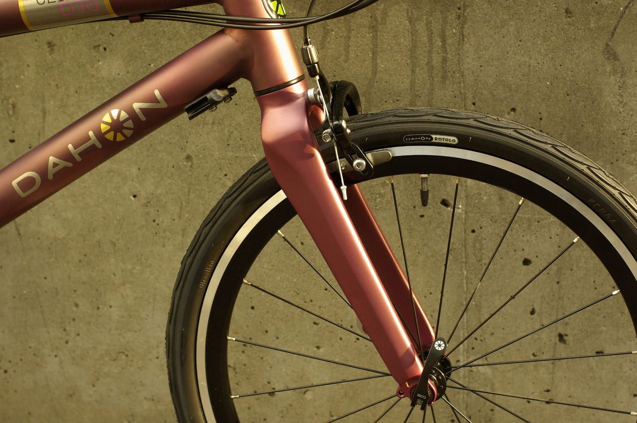 さて、DAHONのClinch D10のご紹介です。以前にも限定車として発売されたことがございましたが、頑強な車体はほぼそのままで再登場です。レバー機構を要しないスマートなフォルムのLock Jawテクノロジーで、一見すると折りたたみ自転車に見えないところも面白いところ。もちろん、外見だけではなく、断面部の凹凸によりチューブの接合面積が十分に確保されるため、強固なロック力を誇ります。