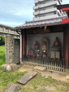 早速ホーム上に見つけた205系1000番台。すでに阪和線から引退した電車です。竹内街道は三国ヶ丘駅からほど近くからスタートします。要所には案内板が整備されており、特にマップ等を持たなくとも迷うことなく進むことができます。早速すぐのところに地蔵道標を発見。前掛けのおかげでちょっと見えづらいのですが、どことなく可愛らしいですね。