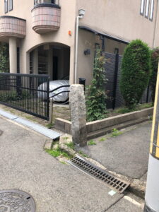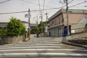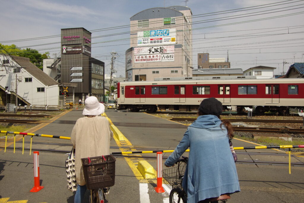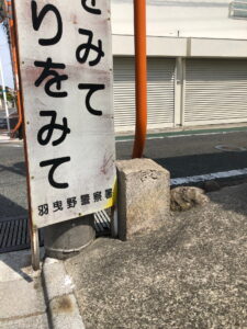 さて、再び街道を東進します。途中には残念ながら折損してしまった道標らしきものもありました。やはり交差点に設置されていることが多いでしょうから、自動車などの接触による破損はある程度仕方がないのかもしれませんね。そこからしばらく進むと近鉄の古市駅付近。大きな踏切を渡ります。