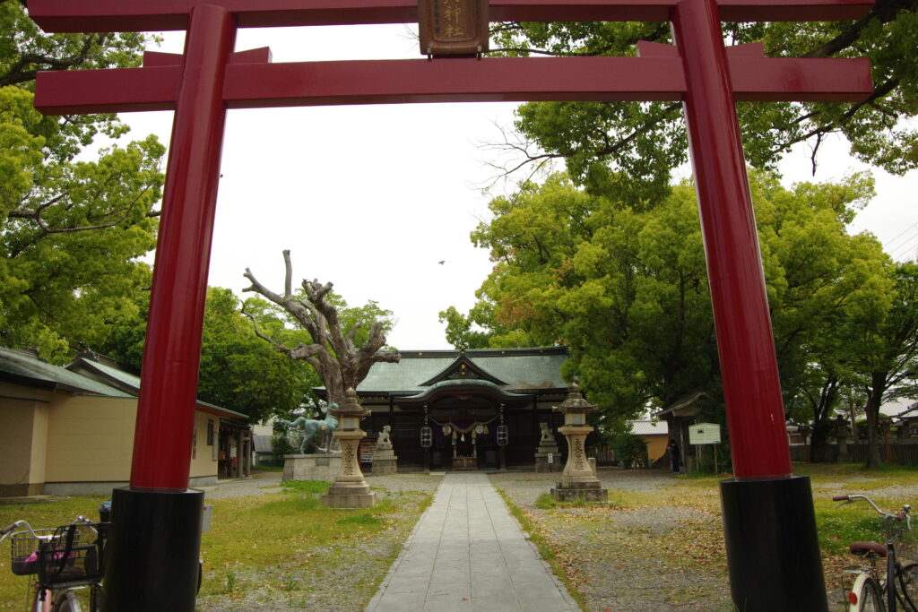金岡神社を通過。大きな赤い鳥居が印象的。時間のこともありましたので撮影だけ。