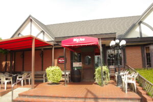 以前にも訪れていましたが、かなり大きな木製の高灯篭。頂に輝く鳳凰が格好良い!お昼過ぎということもあり、ここから街道をちょっと離れて、レストランにて昼食にいたしました。
