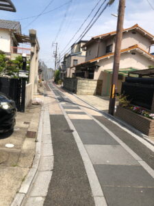 自動車の通行量も非常に少なく、石畳を模したような路面が良い雰囲気です。