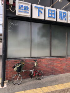さっきから「餅屋」を目にしておりましたし、ちょっと甘いものが欲しくなってきたので、検索で見つけた扇屋さまにてよもぎだんごを購入。とても柔らかく、甘さ控えめのあんこが染み渡ります。その後夕食のおかずを適宜購入し、近鉄下田駅から帰阪いたしました。今回の走行は約36㎞、獲得標高は390mでした~。