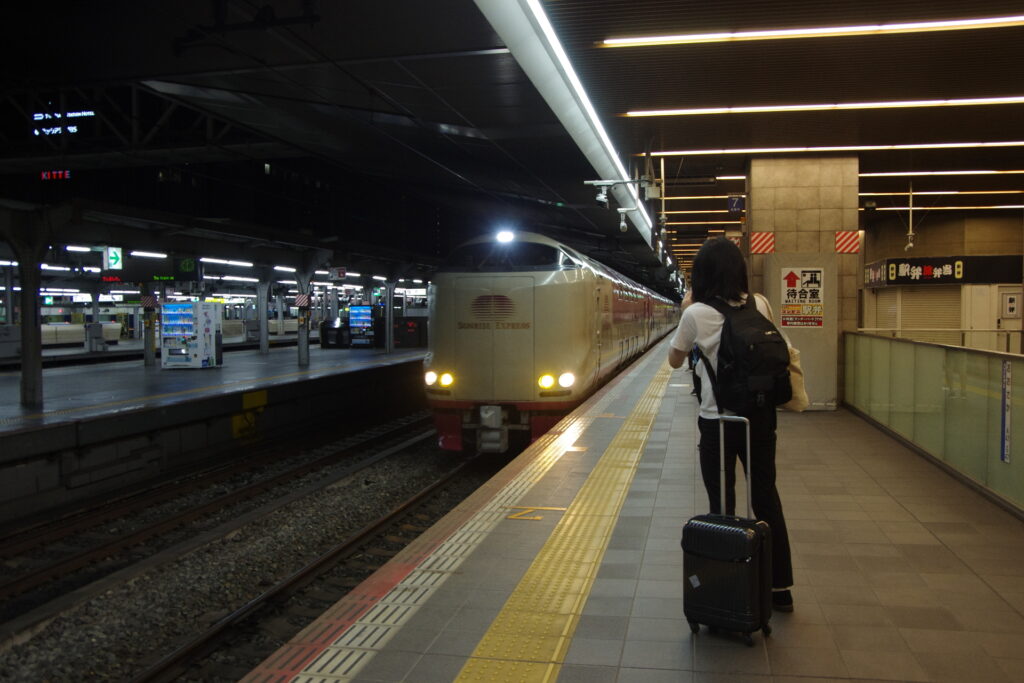 いつもは野田駅近くの友人のお店「一品料理かっぱ」で夕食を済ませるのですが、今回は出発の月曜日が祝日でしたのでお休み、、。自宅で夕食を済ませ、JR桃谷駅近くの銭湯でサッパリしてから大阪駅へ移動、サンライズエクスプレスに乗車です。ここ最近は予約が取りづらいとのことでしたが、いつも通りコツを駆使して予約完了、愛車のBromptonとともに乗車です。大阪駅11番ホームは特急専用、この瞬間はいつもワクワクします。