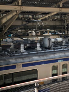 会場を後にして、再び東京駅へ。ここからは旧中山道サイクリングを再開するため、北陸新幹線で軽井沢駅まで移動します。列車を待つ間にお弁当を購入し、普段見ることの少ない交直流電車のパンタグラフ周辺を堪能。