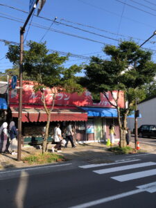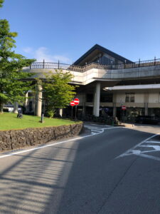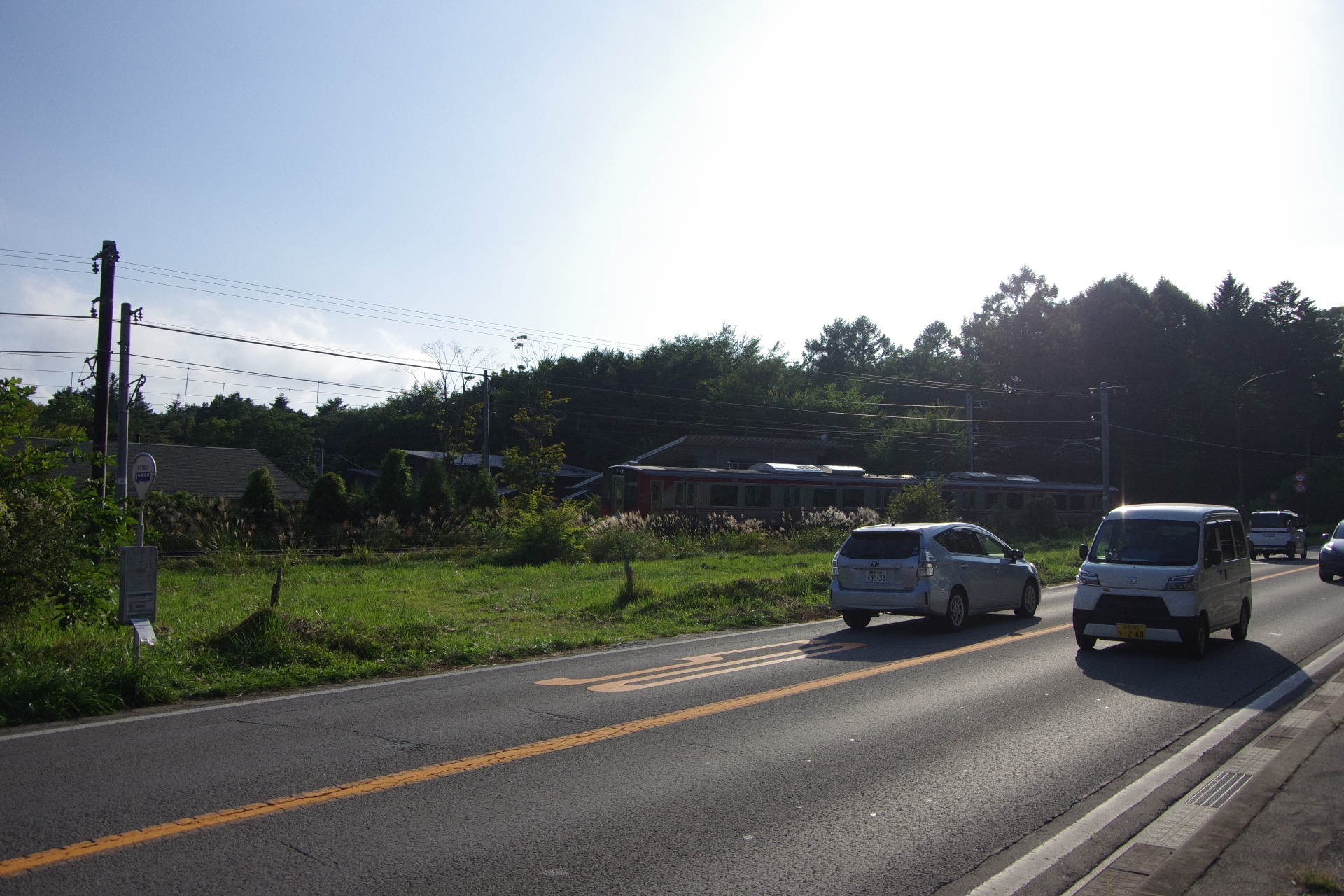 さて無事に下車しましたが、見逃せない標示!これは0系では!?やはり新幹線のアイコンなのでしょうけれども、このまま残していただきたいところ。とかやっているうちに軽井沢駅を出発、前回の離脱地点まで戻りますが、そこまでは緩やかな登り坂。リゾート地らしい店舗が立ち並ぶ大通りを北上します。