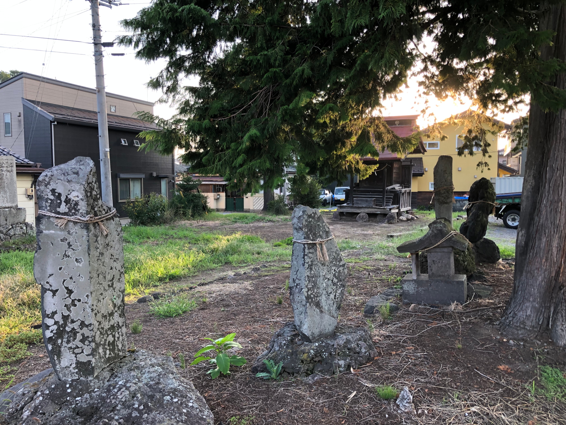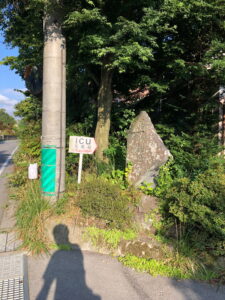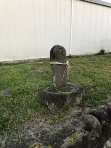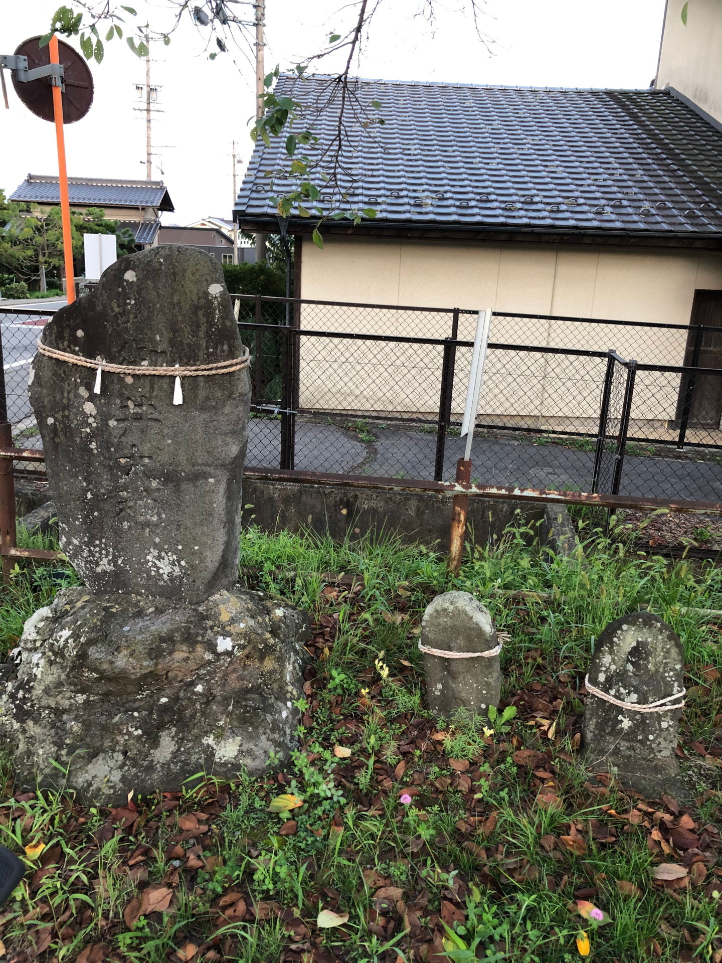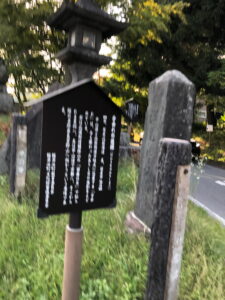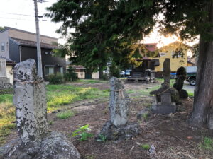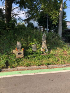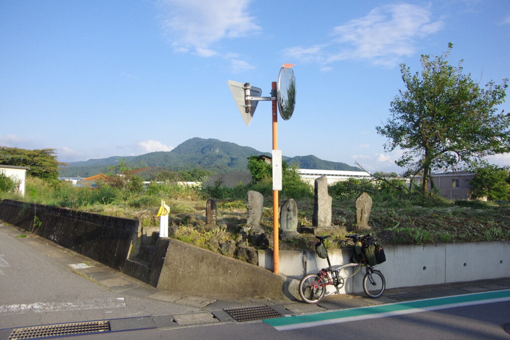 ちょうど居酒屋さんの向かいにあった石塔石仏群。後方の山容も美しい風景です。