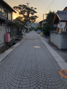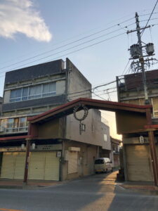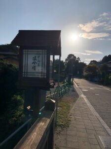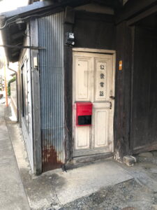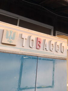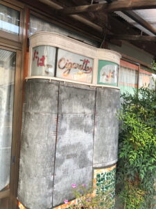 珍しい公衆電話の扉。流石に現在は使われていないようでしたが、かなり古そうです。すぐ近くで見かけたたばこ屋さん。先の公衆電話と同様に古き良き時代を感じます。いよいよ日没が近づいてきました。さらにペースを上げて走ります。もうすぐ塩名田宿です。