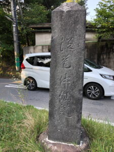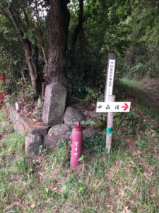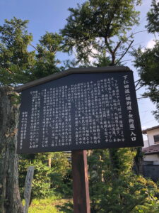 ちょっとぶれてしまいましたが、仲仙道の表記が見て取れます。そのすぐ先を左へ入ります。この先はしばらく緩やかな下り坂。次は小田井宿です。
