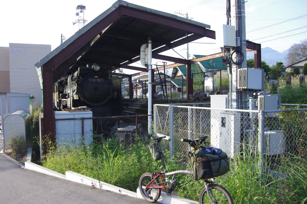 下りきったあたりで、信越本線の御代田駅が中山道を分断してしまっております。地下道で抜けることはできますが、自転車は通行できなさそうですので迂回。ちょうどそのあたりにD51蒸気機関車が保存されております。この駅は以前スイッチバック駅だったようです。