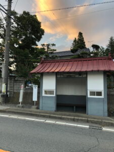 バス停の待合所。神社前云々と停留所名がすりガラスに記されています。すぐに八幡宿へ到着。古い建物が多く、よい雰囲気なのですが、ずっと登り坂ですので止まりたくなかったのが本音(笑)。あっという間に抜けてしまい、次は望月宿です。
