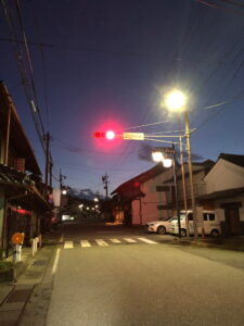 望月宿へ到着いたしました。美しい町並みがあるのですが、ほとんど撮影できず。既にダイナモのスイッチを入れ、念のためハンドル上のヘッドライトもスイッチON。しっかりと前方を照らしながら進みます。