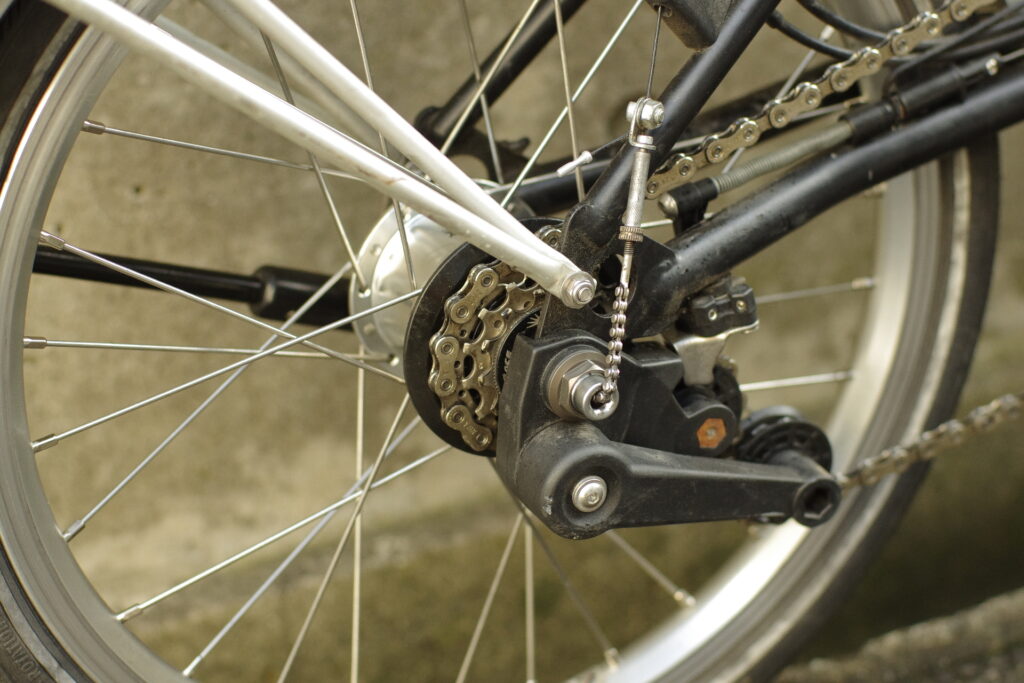 先日の作業です。お客さまよりご依頼を受けて、Bromptonを内装3段+外装3段の9段変速化を行いました。以前にも同様の作業を行っておりますので、問題なくすんなりと作業できました。