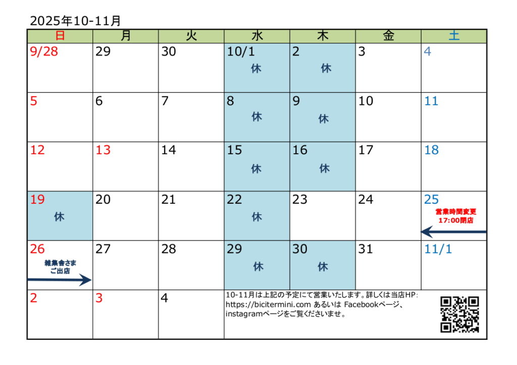 ・10/23【木】 ・・・ 上記10/19【日】休業の代替営業です。
