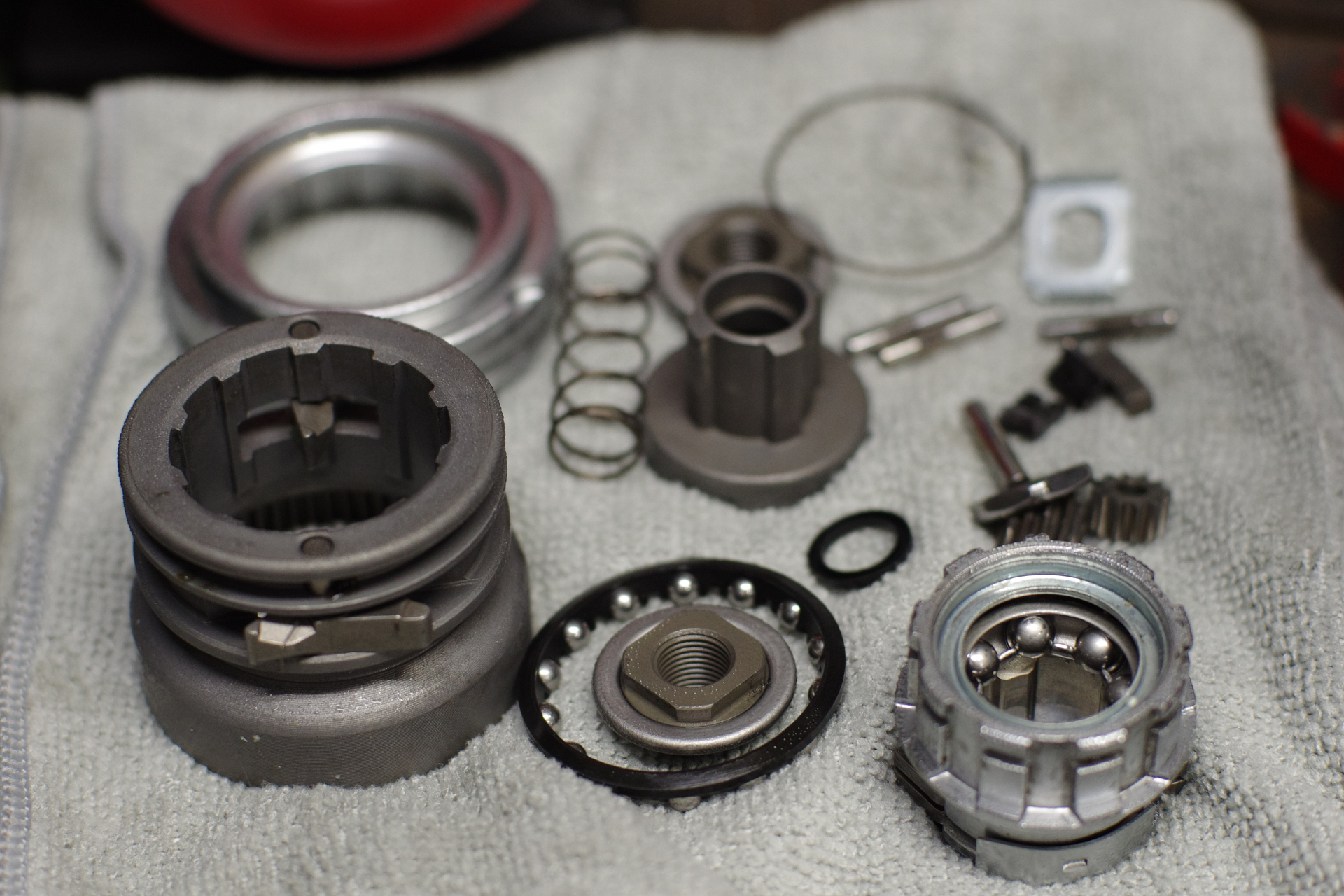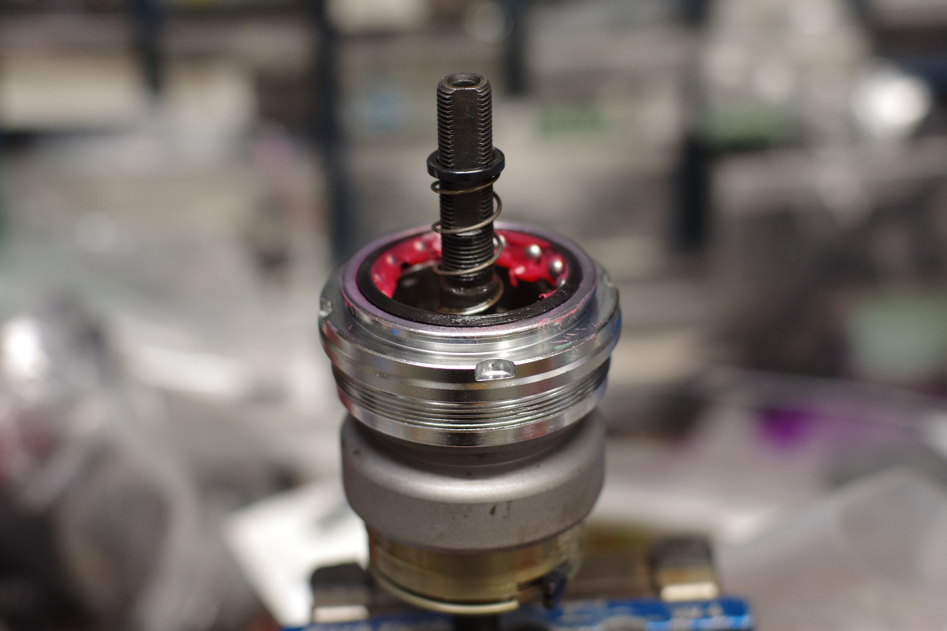 BWRハブは完全に分解し洗浄。10年ほど経過した車体でしたが、これまでにほとんどメンテナンスを行っておられなかったとのことで、洗浄液にはキラキラと光るスラッジが少し入っており、それなりに摩耗しておりました。いつものようにグリスを複数種類使い分けつつ再組立て。