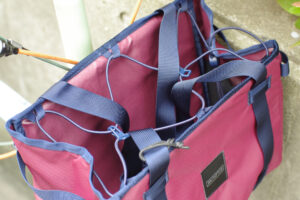 お次はBasket Bag S。これまでもご好評のバスケットバッグのコンパクトバージョン。必要最低限のアイテムだけを持ち運ぶ日に最適な相棒にしました。お弁当、水筒、ちょっとした買い物などに十分な収納スペースを確保しつつ、上部のバンジーストラップで荷物をしっかり固定できます。耐久性高いリサイクルナイロン製で、大型モデルと同じ機能的なシンプルさを継承。必要に応じて容量を調整できる設計です。今回の入荷はプラムのみですが、ブラック/ダークグレイ、サンセット/ネイビーもございます。