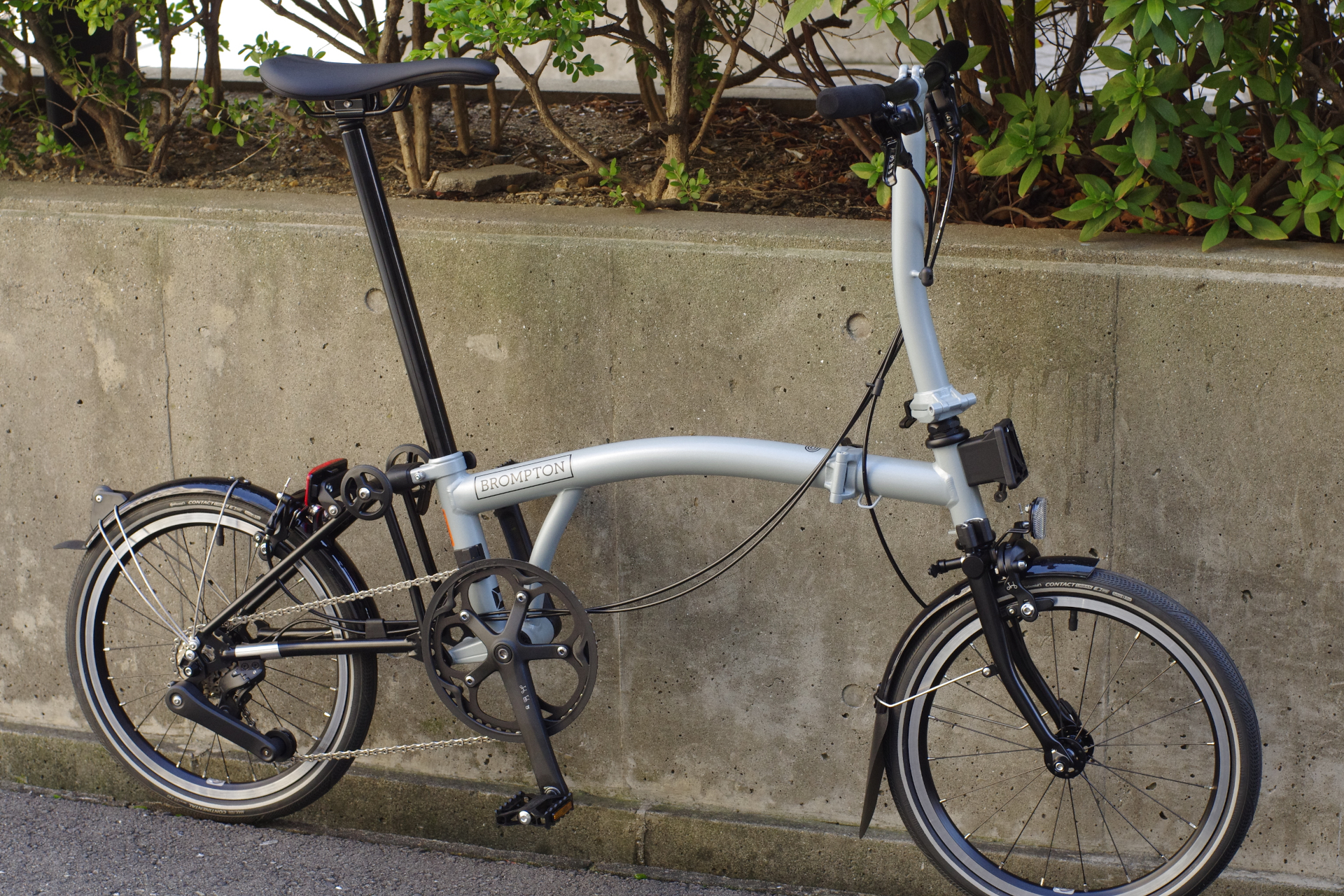 先日の作業です。お客さまよりご依頼を受けて、Brompton P Lineを納車整備いたしました。同時に、ギア比のワイド化も実施。当店での定番メニューと化した内容です。