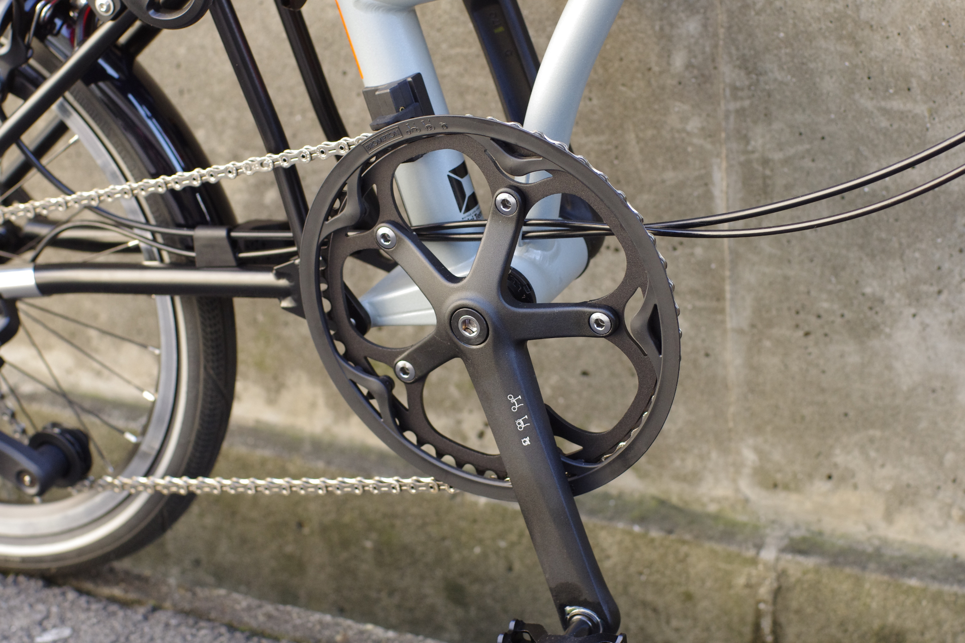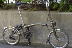 先日の作業です。お客さまよりご依頼を受けて、Brompton P Lineを納車整備いたしました。同時に、ギア比のワイド化も実施。当店での定番メニューと化した内容です。
