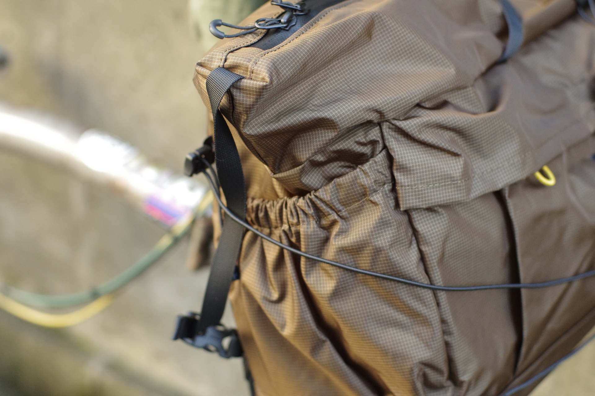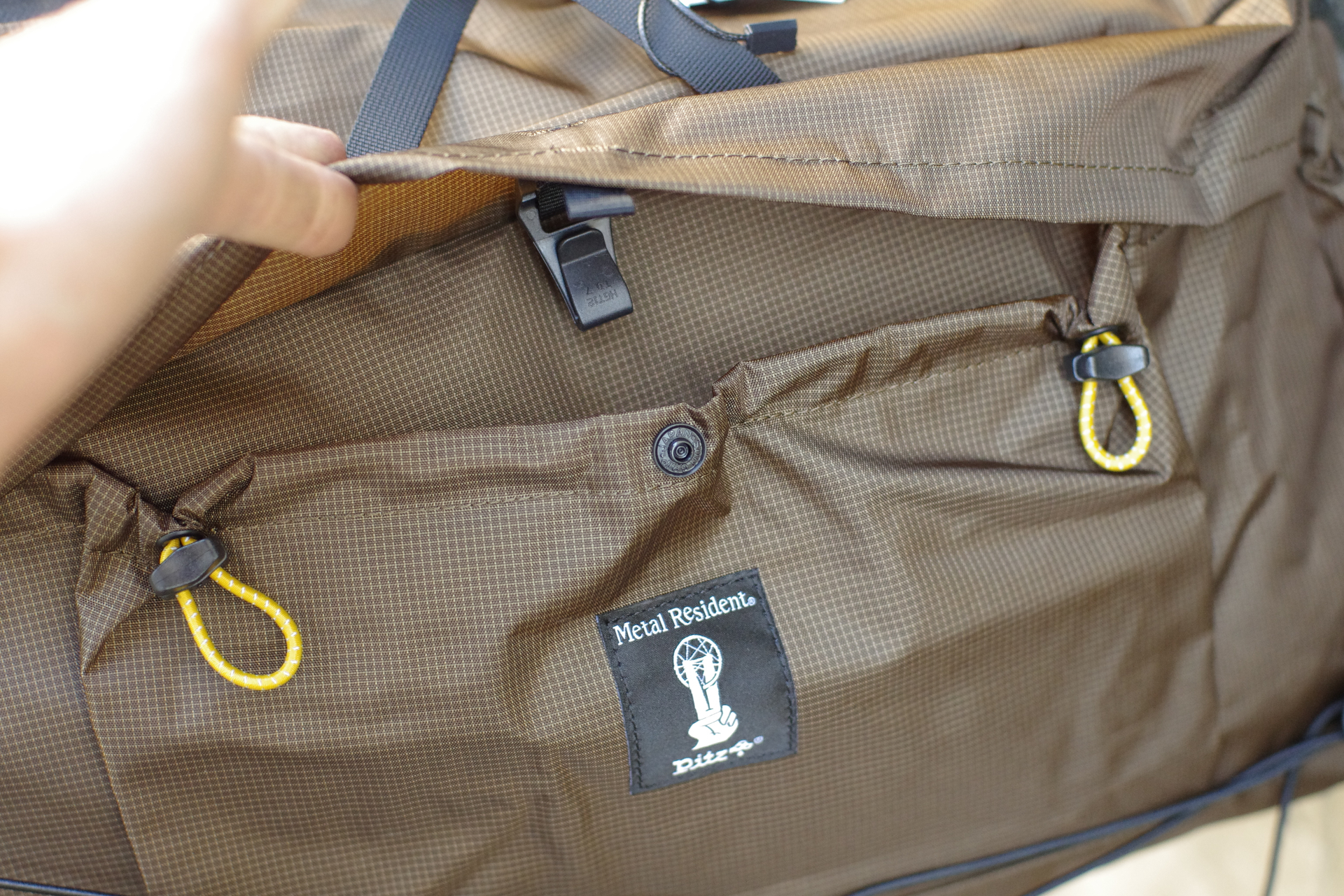 こちらは二回りほど小さいCommuter Bag(容量10L)。形状は上記Weekender Bagとほぼ同一でコンパクトになった感じですが、正面のポケットはフラップが無く、ショックコードで閉じることが可能です。