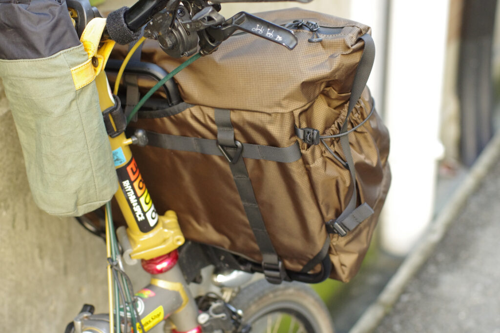 最後にご紹介するのはBottle Bag。名前の通りのボトルを入れるためのバッグです。私の愛車へ取り付けてみましたが、内側に芯材が入っておりますので、くにゃっとならずに出し入れが容易です。しかしながら、輪行袋へ収納する際にはちょっと窮屈になってしまうかもしれません。お使い方次第といったところかな。