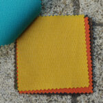 生地サンプルを撮ってみました。上段左上から、アイリスパープル、サクラピンク、アーティックブルー、サンドブラウン、セメントグレイ。サックスブルー、マスタードイエロー、サンセットオレンジ、オリーブグリーン、アンバーブラウンです。これとは別にブラックもございます。上段と下段の生地は質感がちょっと異なりますので、実物をご覧いただきたいところ。使い勝手も良く、これは人気が出そうですよ。