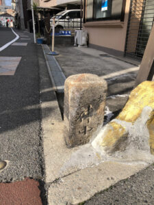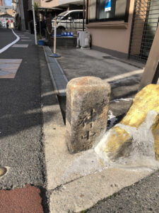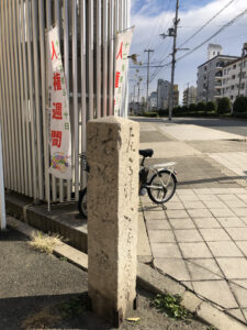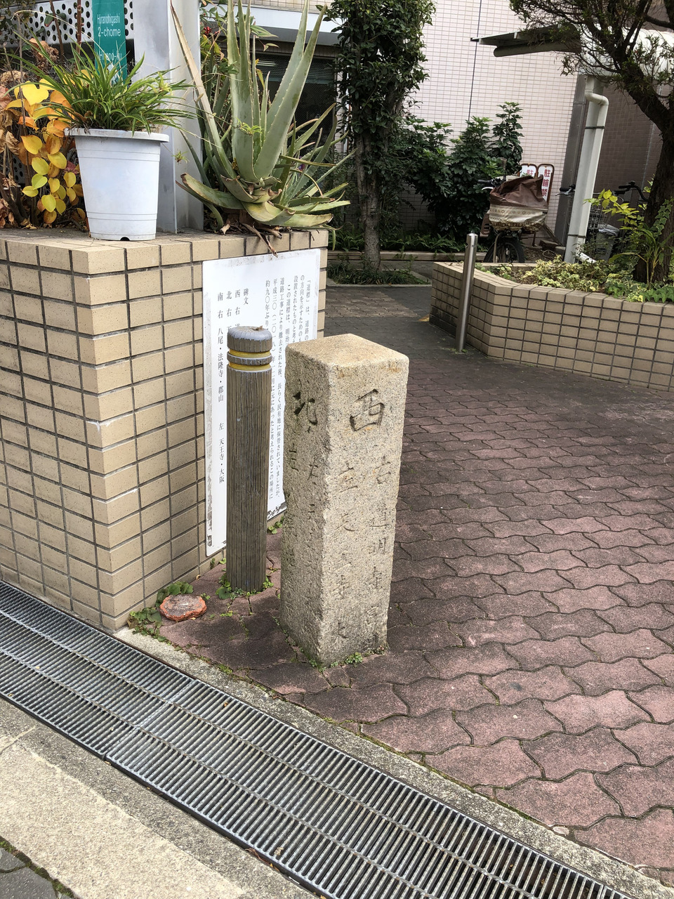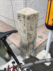 先週の木曜日、久しぶりにちょっとサイクリングへ出かけてまいりました。今回は古市街道の道標をチェックしつつ、ぶらぶらと。近鉄電車に乗りたかったというのも重要な理由です。10時半過ぎにスタートし、まずはスタート地点の平野付近まで移動しつつ、道標チェックは怠りません。よく行く銭湯の近くにもあることは知っていたのですが、明るい時間帯に見たのは初めて。しっかりと文字が読めますね。