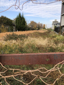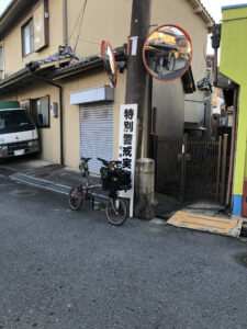ということで平野商店街近くから街道ルートを走りますが、すぐ近くの貨物廃線跡を発見。以前にも通ったことがあるところですが、ここ数年の道標マイブーム以降は訪れておりませんでしたので、今現時点での感覚で改めて見てみると、なるほど遺構がしっかりと残っている感じ。