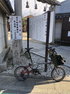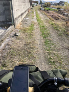 その後も街道を走りながら、気になった看板や建造物などをパチパチと撮りながら進んでいきます。深居神社前にて小休止。「歯神さん」として立石が祭られていましたが、児童公園内にポツンと鎮座していて、どことなく親しみを感じる雰囲気でした。その後、畑横に未舗装路がありましたが、このくらいはどうということもなく走行可能。
