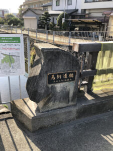 ちょっと進むと「馬街道橋」を渡りました。親柱が馬の形になっているのがお洒落です。そのまま進むと大和川から少しずつ離れつつ、南下していきます。すぐそこには産土神社。「右  大峰山」が確認できます。