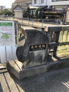ちょっと進むと「馬街道橋」を渡りました。親柱が馬の形になっているのがお洒落です。そのまま進むと大和川から少しずつ離れつつ、南下していきます。すぐそこには産土神社。「右 大峰山」が確認できます。
