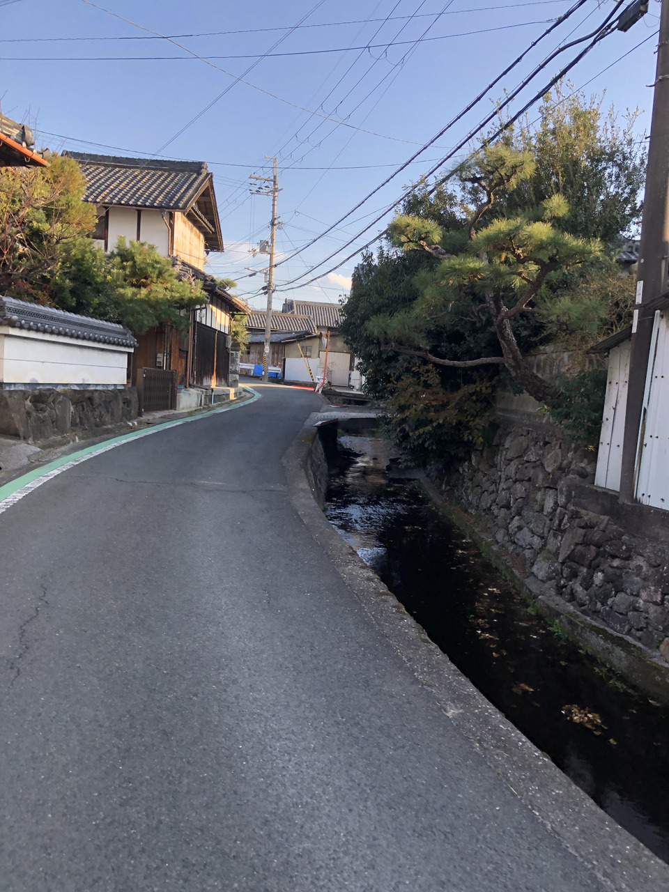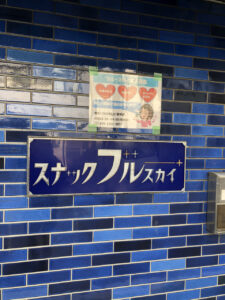 そのすぐ近くの岡ミサンザイ古墳。周囲をきっちりと堀で囲われており、相当な身分の方だったのでしょう。調べてみましたら、大和武尊の子・仲哀天皇の陵墓とのことでした。再び街道をぶらぶらしますが、スナックの看板が格好良すぎてつい撮影。「ブルースカイ」の点々が星になっていたり、伸ばし棒が流れ星になっていたり、、、夜空を連想させる光沢のあるタイルとともに素晴らしい風情を感じます。