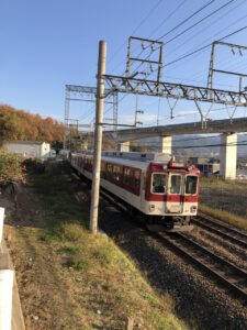 近鉄藤井寺駅の東側を渡ります。いよいよ引退が迫った近鉄の丸屋根鋼製車が見えます。かわいらしい顔つきで好きなので、全廃までにもっと乗っておきたいところです。