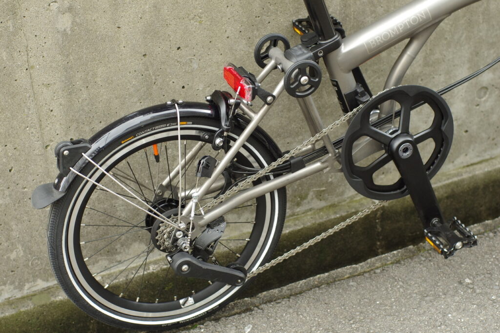 先日の作業です。お客さまよりご依頼を受けて、Brompton T Lineを12段化いたしました。ご購入時は外装4段の車体でしたが、様々な手法を駆使し、内装3段を追加した格好です。現在は12段を標準装備した車体が生産なされておりますので、今後の需要は非常に少ないことと思われますが、このような作業が可能な場合もある、ということで。