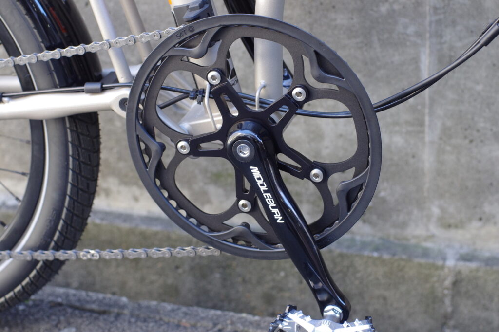 さて、昨年の作業です。お客さまよりご依頼を受けて、Brompton G LineへMiddleburnのクランクを組みつけいたしました。現代では少なくなった細身のクランクが得意なイギリスのメーカー。スパイダー部分を交換することで、柔軟に対応可能です。