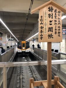 今週の木曜日、お休みでしたので久しぶりのちょっとサイクリングへ出かけてまいりました。まずは自走で近鉄の大阪阿部野橋駅まで、そこから御所駅まで輪行なのですが、特急ホームに16000系が止まっていましたので、これは乗るしかない!ということでサクッと乗車。近鉄の中でも現役最古の特急車両、これまで乗車したことがありませんでしたので、ニヤニヤしながら尺土駅まで移動。ここで御所線へ乗り換えます。