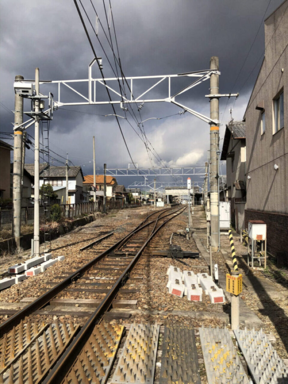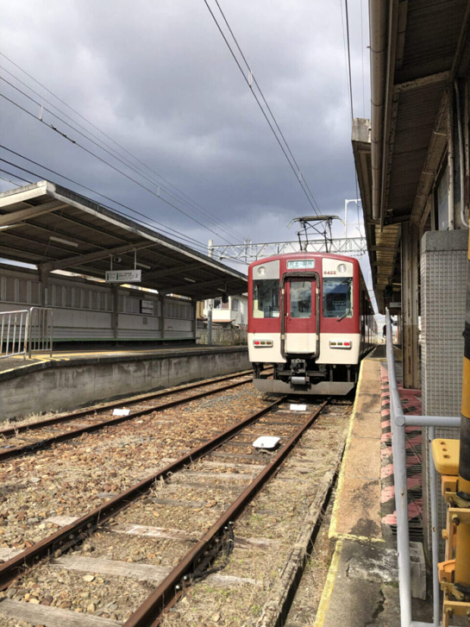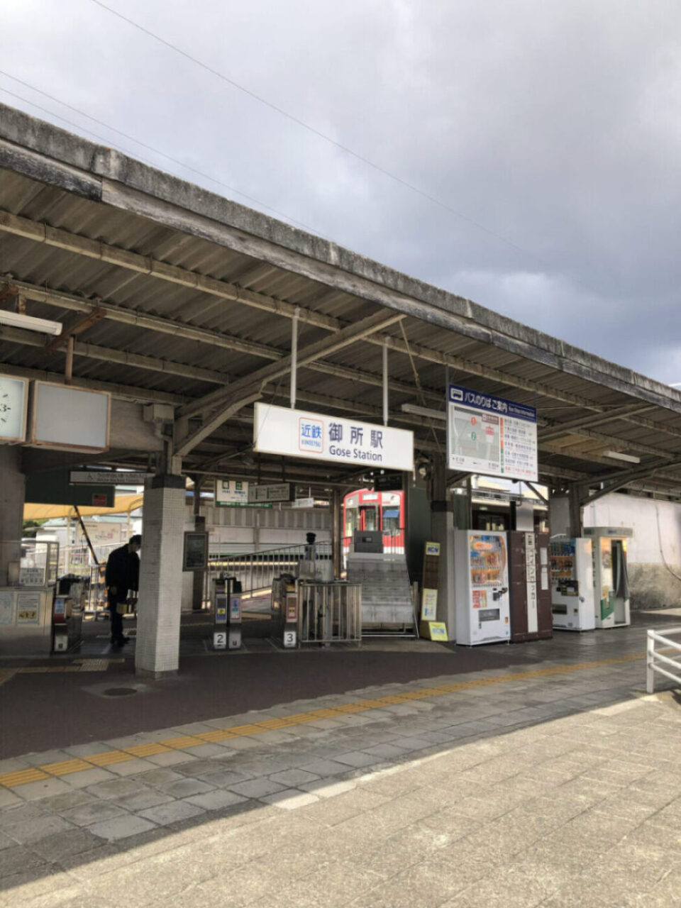 無事に終点の御所駅へ到着。計画段階ではこのまま奈良県の五条まで延伸する計画があったのですが、実際には建設されませんでした。そのため、レールはこのまま延伸ができる構造のまま。駅舎も線路と平行に建っています。