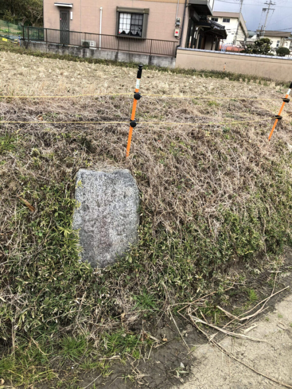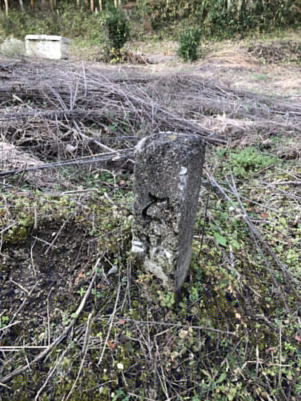 日が傾いてきました。雨は少しマシになってきましたが、昼食がまだだったのでお店を探しつつ北上します。市尾駅近くで発見した船倉村道路元票です。