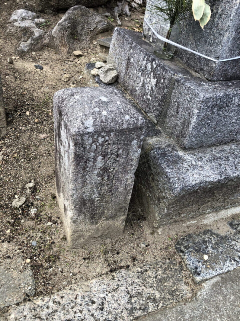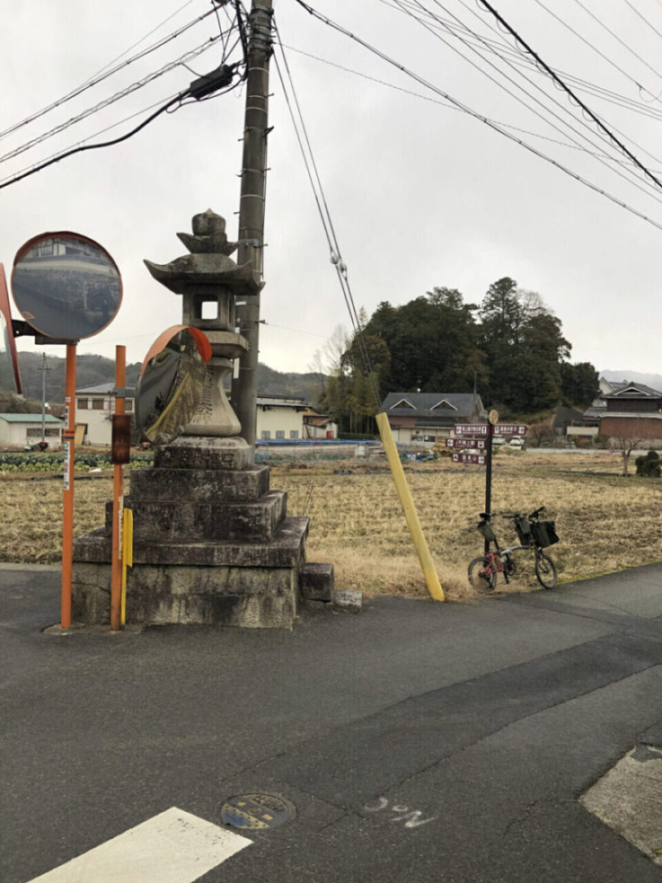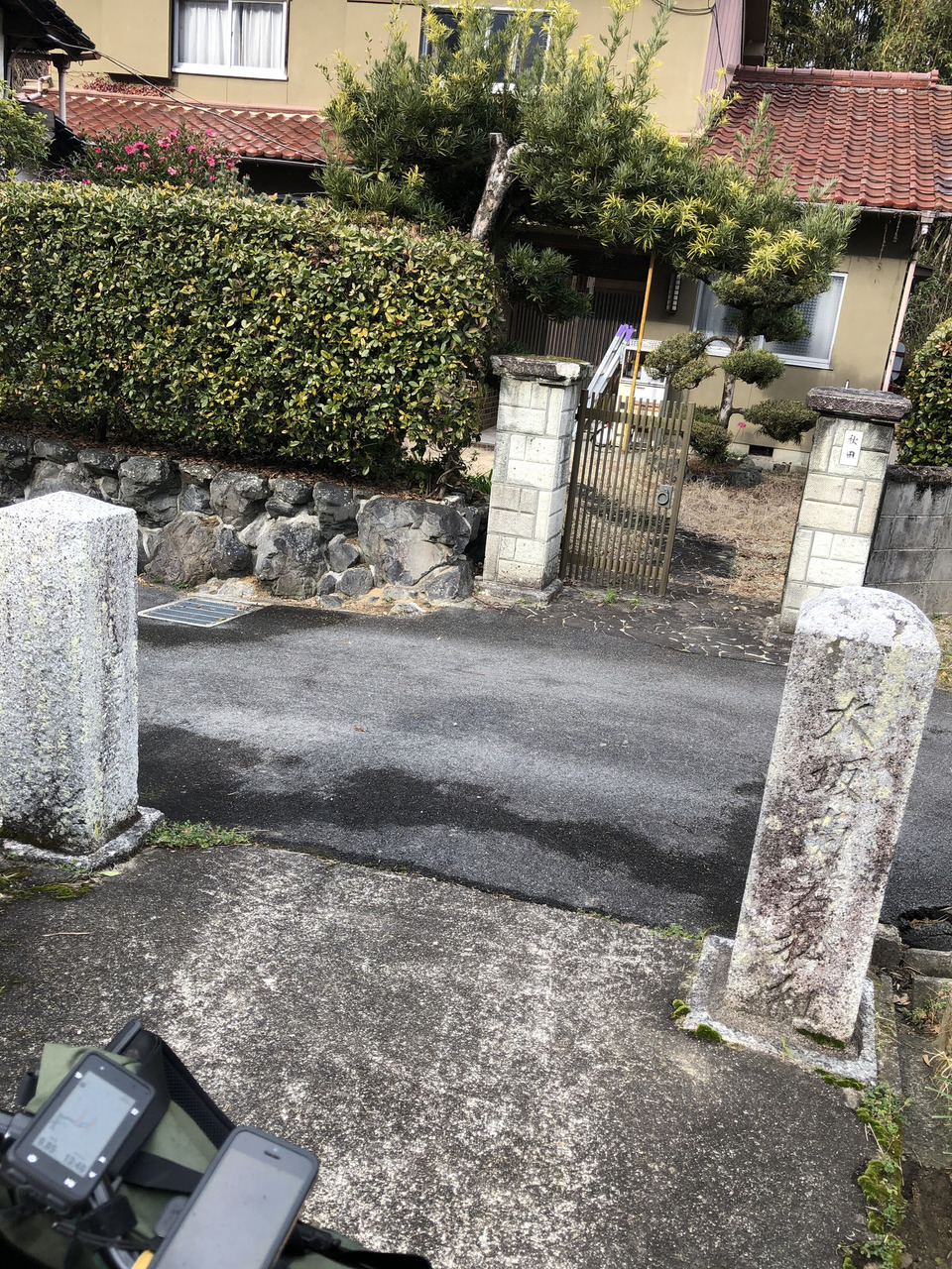 二つ並んだ常夜灯。自然石を組み合わせた形状と、二基が寄り添うように並んだ光景がどことなく愛らしいですね。そのすぐ近くの石柱。道標ではなかったようですが、右上画像に写っているものには「大坂」の文字。ちょっと嬉しくなります。