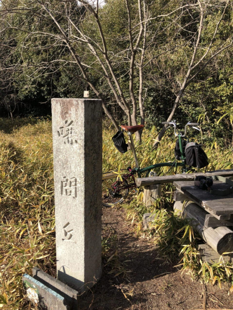 橋を渡って田園風景を抜けると、池の脇に小さな道標を発見。「ごせ」の文字が判読できました。昔々の人々もこの道標を見て安堵したことでしょう。歴史を感じる瞬間です。