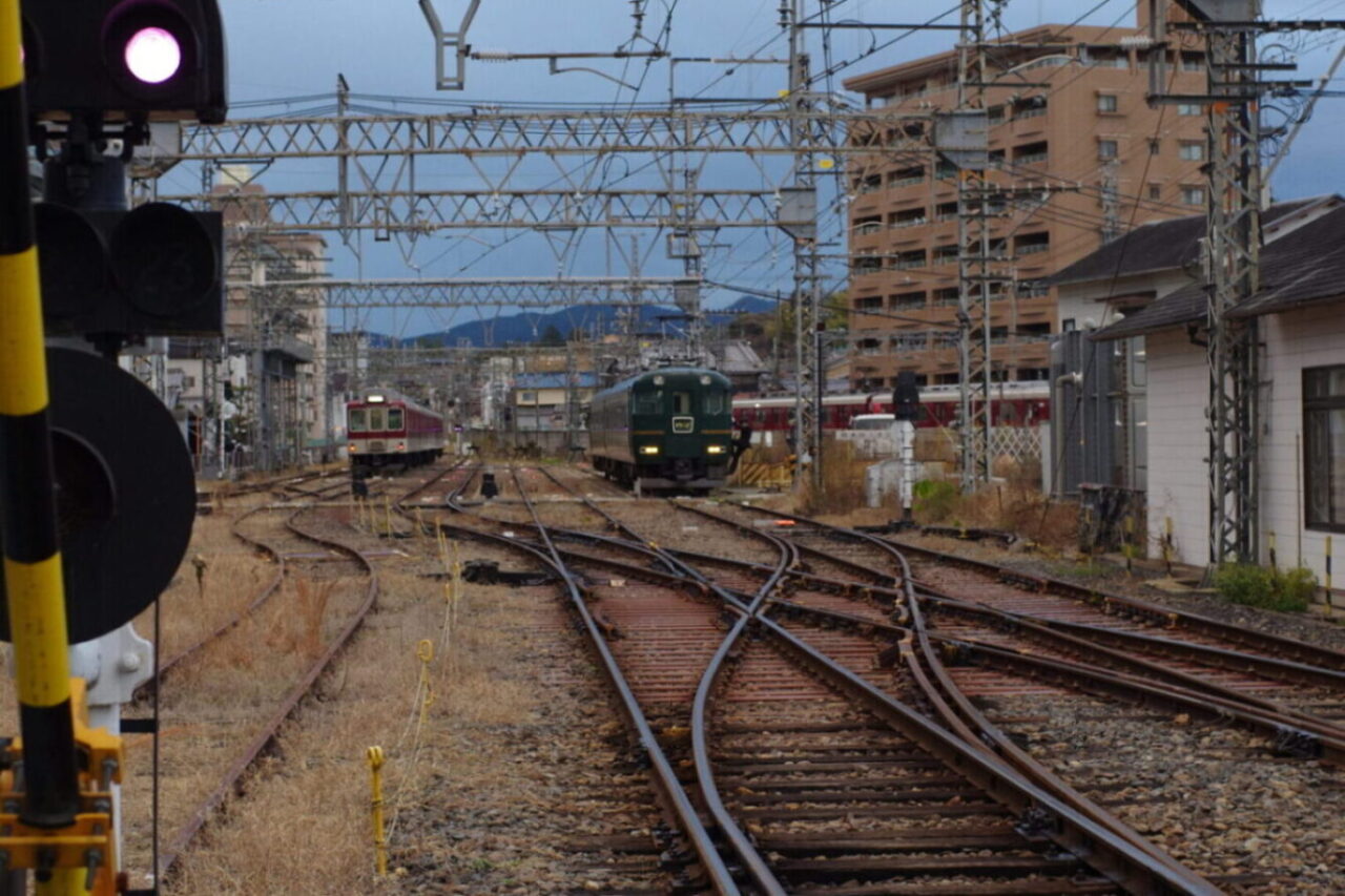 今週の木曜日、お休みでしたので久しぶりのちょっとサイクリングへ出かけてまいりました。まずは自走で近鉄の大阪阿部野橋駅まで、そこから御所駅まで輪行なのですが、特急ホームに16000系が止まっていましたので、これは乗るしかない!ということでサクッと乗車。近鉄の中でも現役最古の特急車両、これまで乗車したことがありませんでしたので、ニヤニヤしながら尺土駅まで移動。ここで御所線へ乗り換えます。