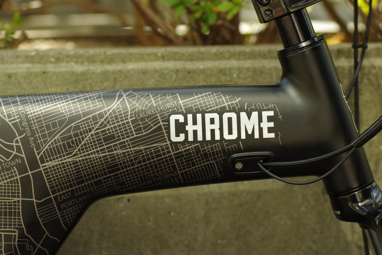 第1便として入荷いたしましたのが、このBESV×CHROME Limited Edition です。昨年発売のPSA2というモデルをベースに、マットブラックの専用カラーとポートランドの街並みをモチーフに都市と自転車文化の融合をイメージしたグラフィックが施されています。