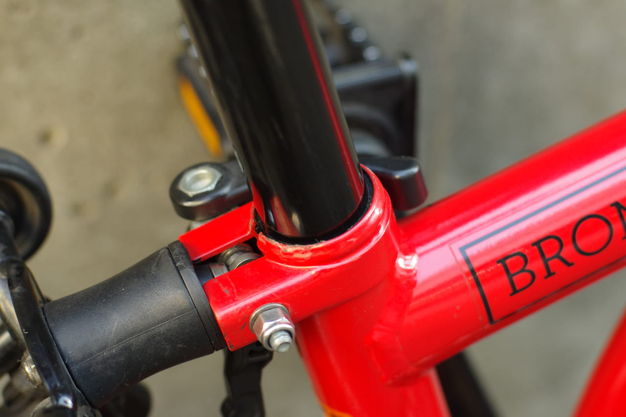 先日の作業です。お客さまよりご依頼を受けて、Brompton S2Lの修理作業を行いました。2020年ごろの車体ですが、しっかりとお使いいただいておりましたので、消耗箇所をきっちりと仕上げる格好といたしました。