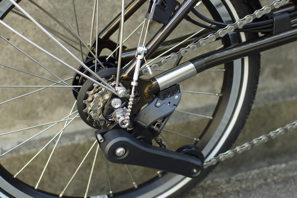 ということで12段変速のこちら。個人的には外装4段のBromptonを愛用しておりますが、しっかりと高低差のあるツーリングをお考えの方には、やはり12段もあれば全く心配無用です。重量と変速とのバランスをどのように感じられるのか?ご用途次第と言ってしまえばそれまでなのですが、まだ旧来のMk5、6段変速のモデルもカラーによっては在庫がございます。