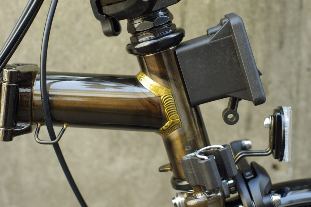 先日入荷のこの車体、先般廃版となることが発表された、Brompton C Line Explore 12 Speed Mid Handleです(旧呼称M12L)。人気の高いブラックラッカーのMidハンドル。すでに外装4段のモデルは輸入元にも在庫なし、完売しております。