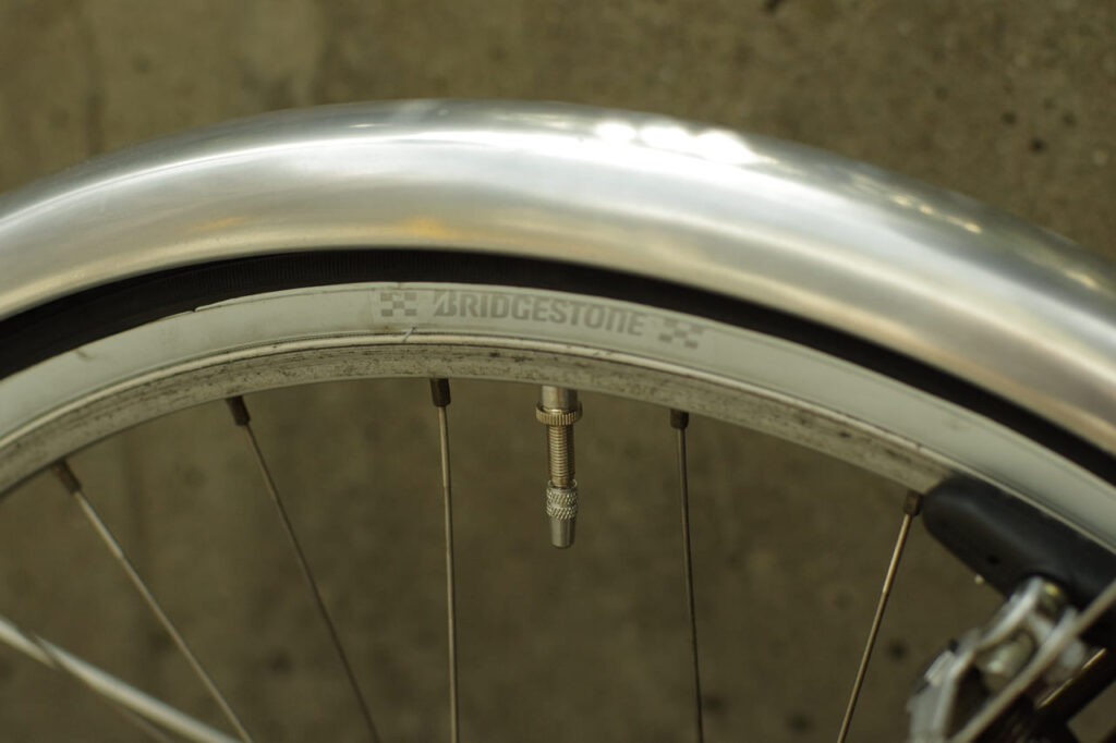 この車体は22インチWOのホイールでしたので、タイヤとチューブの入手にてこずってしまいました。タイヤはブリヂストン製品がございましたが、仏式チューブがどうしようもなく、結局イギリスから手配し、事なきを得ました。到着までの間に前後ハブ、ヘッドパーツ、BBなどを分解洗浄の上グリスアップ、各部の磨き作業などを行いました。非常に長い期間を要しましたが、お客さまには大変お喜びいただけました。ここまでの作りこみがなされた自転車はそう触れる機会もございませんし、とても良い経験になりました。ありがとうございました!