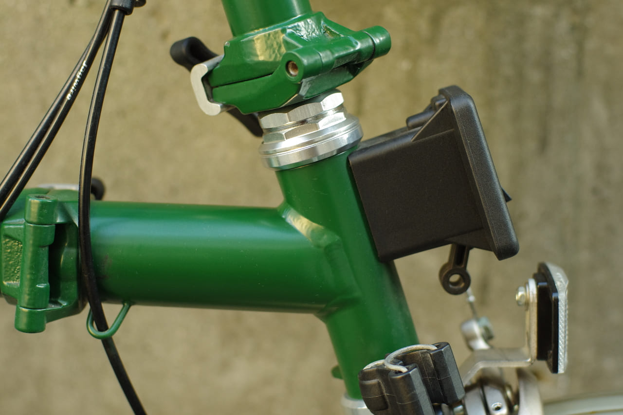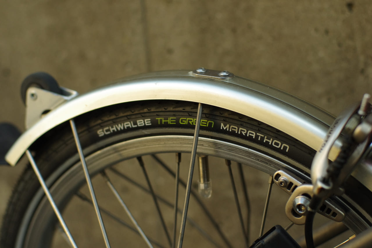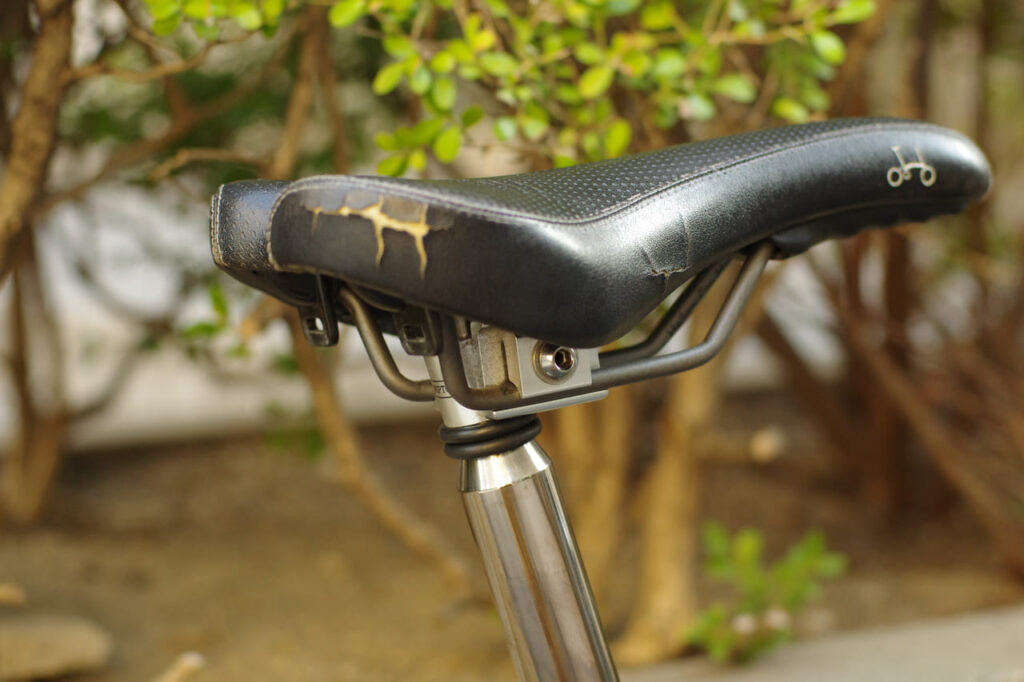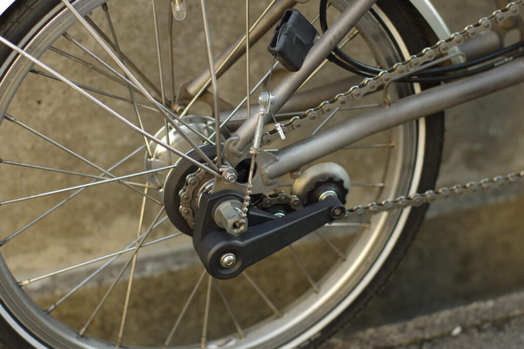 こちらの車体、2011年製のBrompton M3L-X改です。お客さまのお乗り換えに伴い入庫いたしました。無事に再整備を終えましたので、中古車として販売いたします。